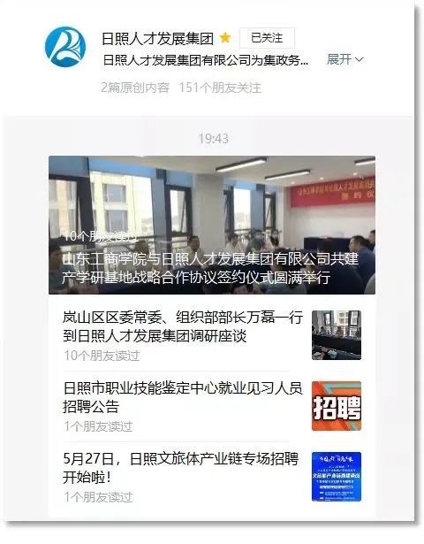 1.關(guān)注“日照人才發(fā)展集團(tuán)”微信公眾號(hào);