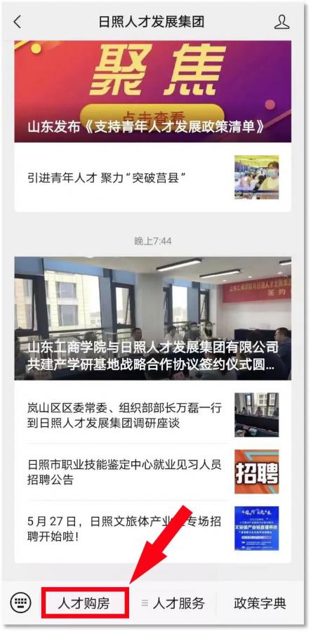 2.在消息欄處點(diǎn)擊“人才購房”;
