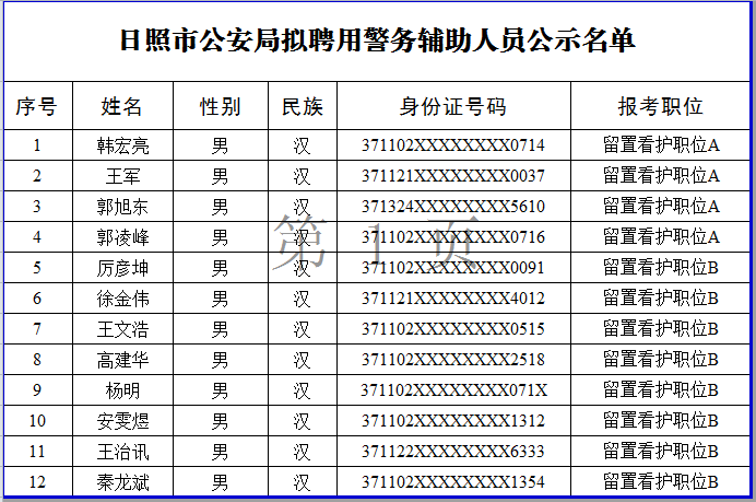 日照市公安局擬聘用 警務(wù)輔助人員名單公示