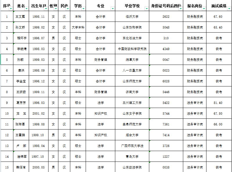 山東種業(yè)集團魯南有限公司公開招聘工作人員,經(jīng)過網(wǎng)上報名、資格初審、現(xiàn)場面試等環(huán)節(jié)?,F(xiàn)將面試人員成績公示如下,公示期限自2022年6月13日至2022年6月17日,公示期內(nèi)如有異議,可向山東種業(yè)集團魯南有限公司反映,聯(lián)系電話:0633-6107701 。